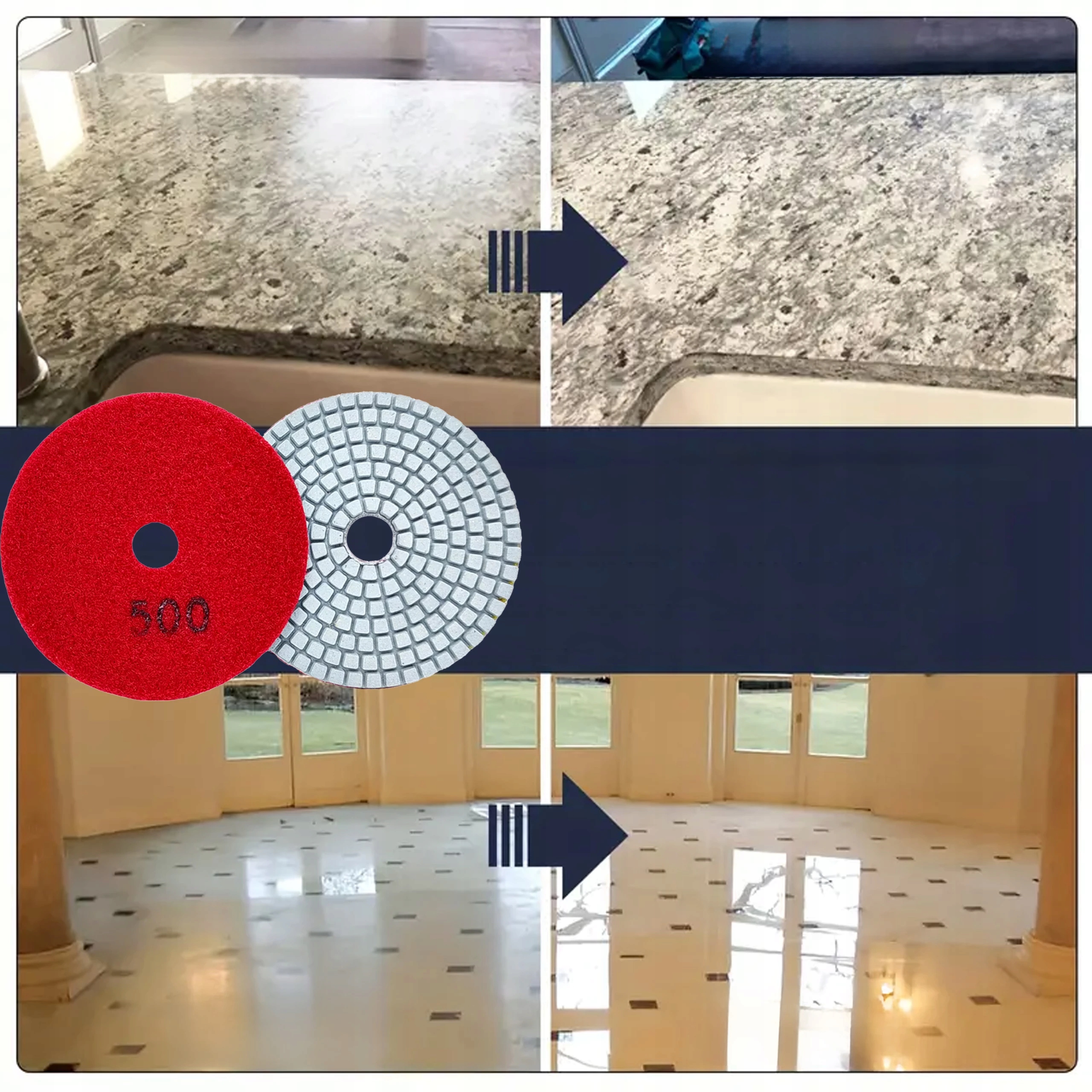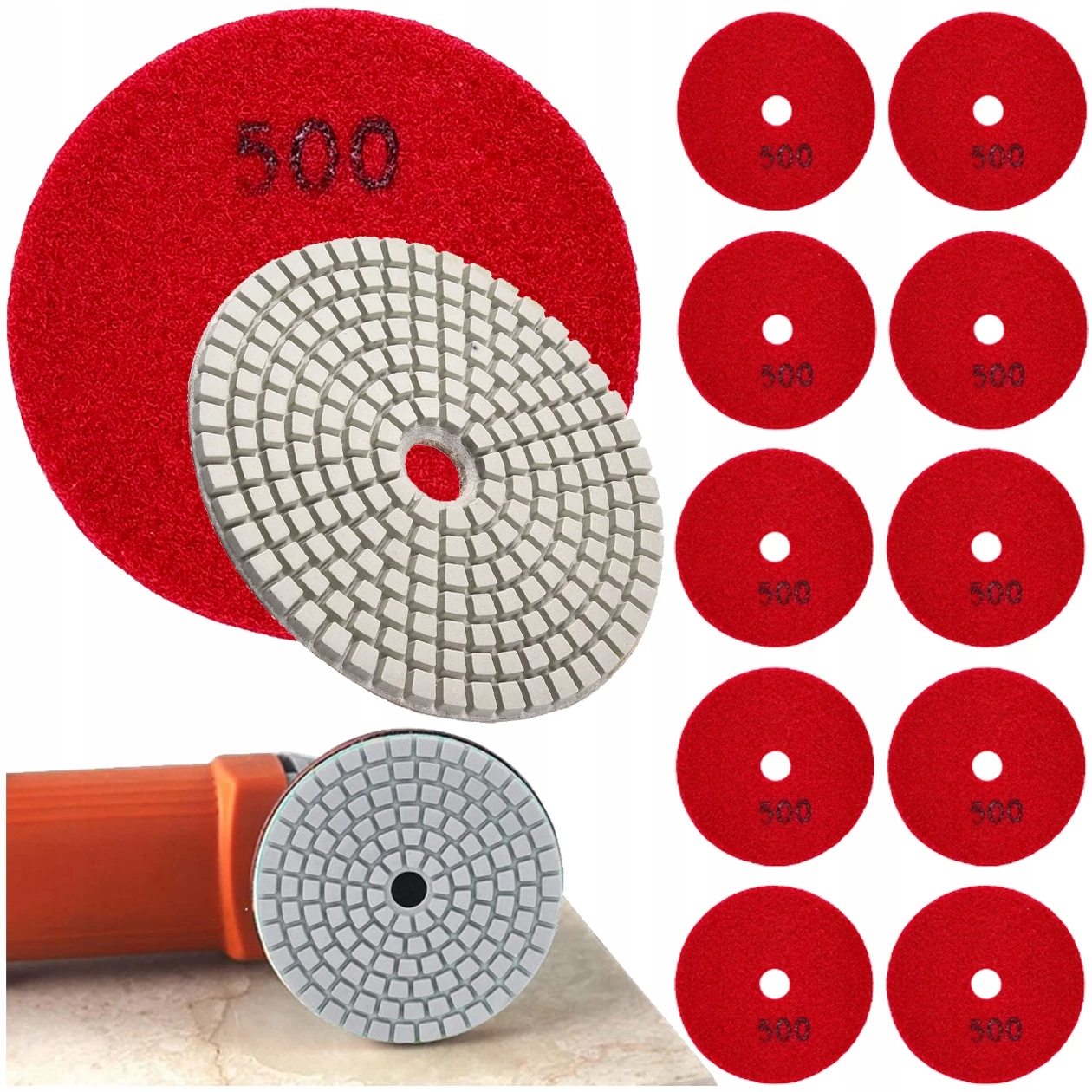 10X TARCZA DIAMENTOWA POLERSKA 80MM DO SZLIFOWANIA GRESU PŁYTEK NA RZEP 500