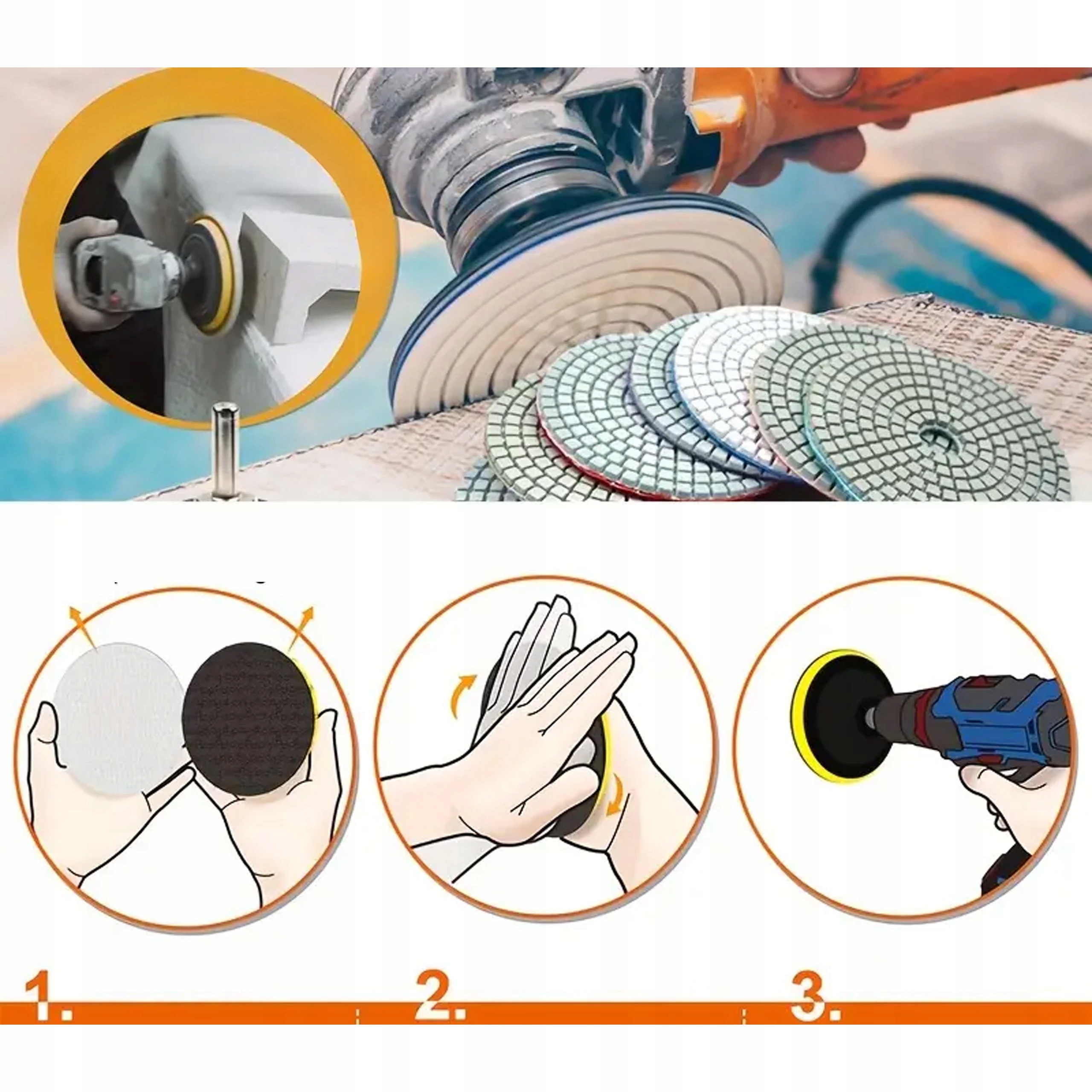 Zestaw dziesięciu tarcz diamentowych polerskich o średnicy 80 mm to profesjonalne narzędzie, które zapewnia wyjątkową precyzję i wydajność podczas szlifowania różnych powierzchni, takich jak gres, płytki ceramiczne, kamień, a nawet marmur i granit. Tarcze są przystosowane do pracy zarówno na sucho, jak i na mokro, dzięki czemu idealnie sprawdzą się w różnorodnych warunkach roboczych. Mocowanie na rzep pozwala na łatwą i szybką wymianę.
