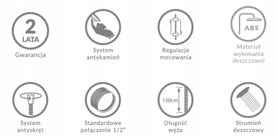 Natryski Alanis to bogata kolorystycznie seria, która jest uzupełnieniem cieszących się ogromną popularnością modeli łazienkowych i kuchennych. Połączenia bieli i czerni z dwoma odcieniami złota stanowią oryginalne dopełnienie nowoczesnych wnętrz. Wszystkie modele w serii podsiadają system antykamień ułatwiający usuwanie osadów wapiennych oraz węże z systemem antyskręt zapobiegającym jego plątaniu.
