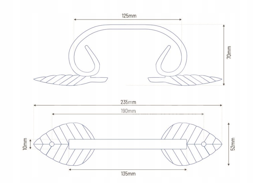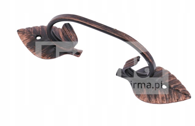 Uchwyt do drzwi ozdobny. Rączka 110mm, całość 250mm. Całość malowana na czarno lakierem proszkowym, patynowana. Wyrób polski bardzo solidny i elegancki