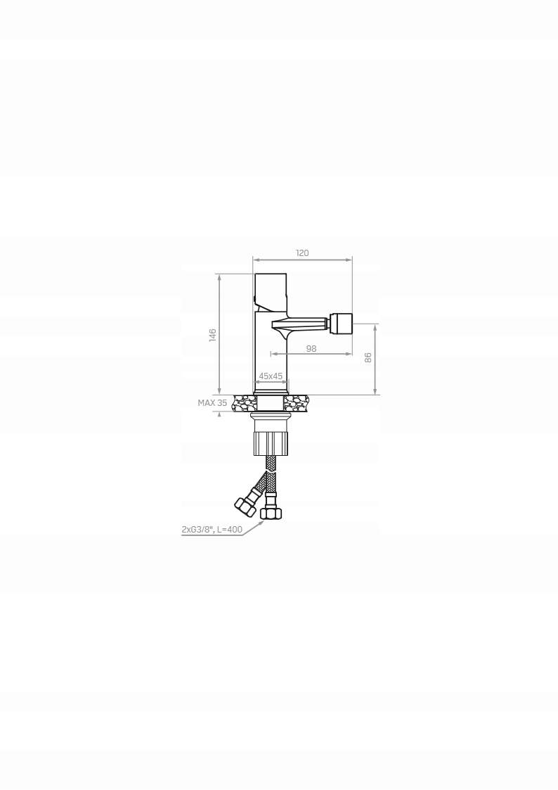 - Długość wężyków przyłączeniowych: 400 mm
