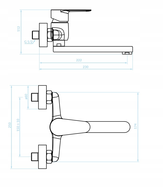 - Zasięg wylewki: 222 mm