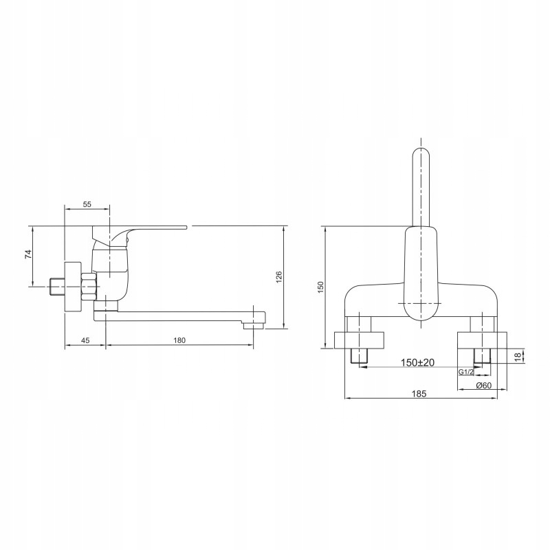 - Montaż: Naścienny