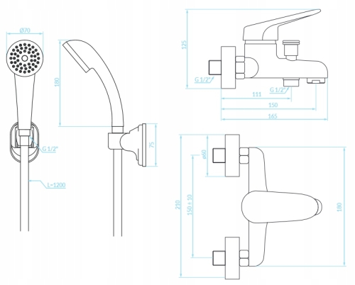 ORIS – BATERIA WANNOWA ŚCIENNA Z ZESTAWEM NATRYSKOWYM - BQO_011D