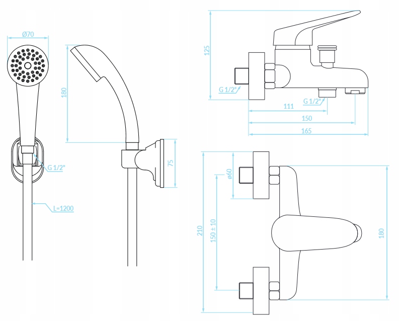 BATERIA WANNOWA ŚCIENNA Z ZEST. NATRYSK. - ORIS