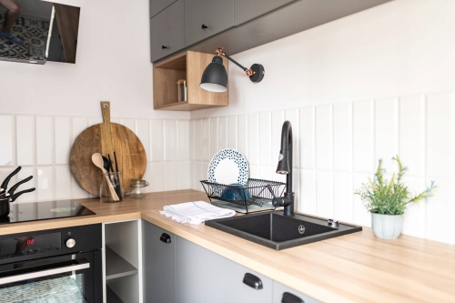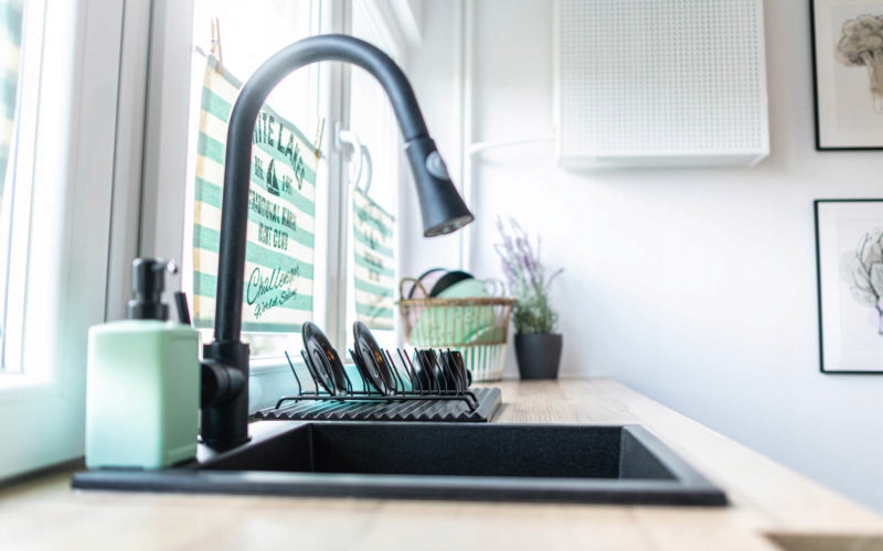 BATERIA ZLEWOZMY. STOJĄCA Z WYCIĄG. WYLEWKĄ CZARNY