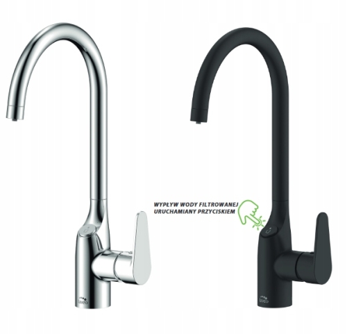 Bateria kuchenna CLARO z ruchomą wylewką w kształcie "U". Baterię wyróżnia możliwość przyłączenia do filtra wody. Na jej korpusie znajduje się przycisk, dzięki któremu można aktywować oczyszczanie wody w dowolnym momencie. W zestawie znajduje się dodatkowy wężyk przyłączeniowy do filtra, montowanego pod zlewem.