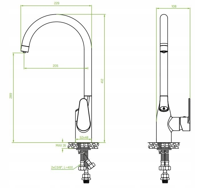 - Długość wężyków przyłączeniowych: 500 mm