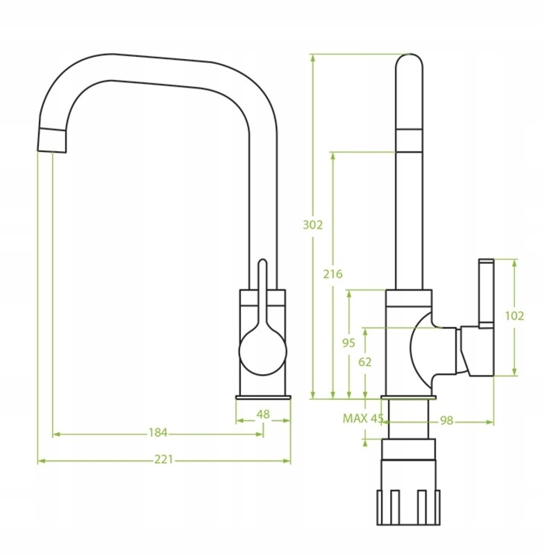 - Zasięg wylewki: 184 mm