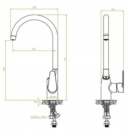 - Wyciągana wylewka: Nie