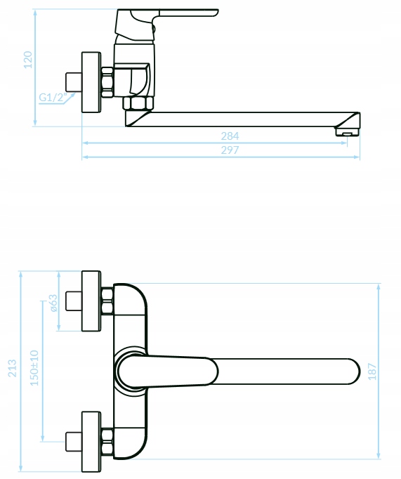 - Zasięg wylewki: 297 mm
