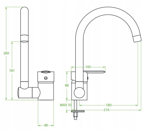 - Zasięg wylewki: 183 mm - 18.3 cm