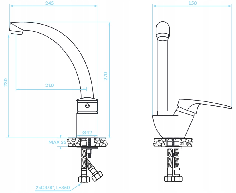 BATERIA ZLEWOZMYWAKOWA STOJĄCA Z WYLEWKĄ F - ORIS