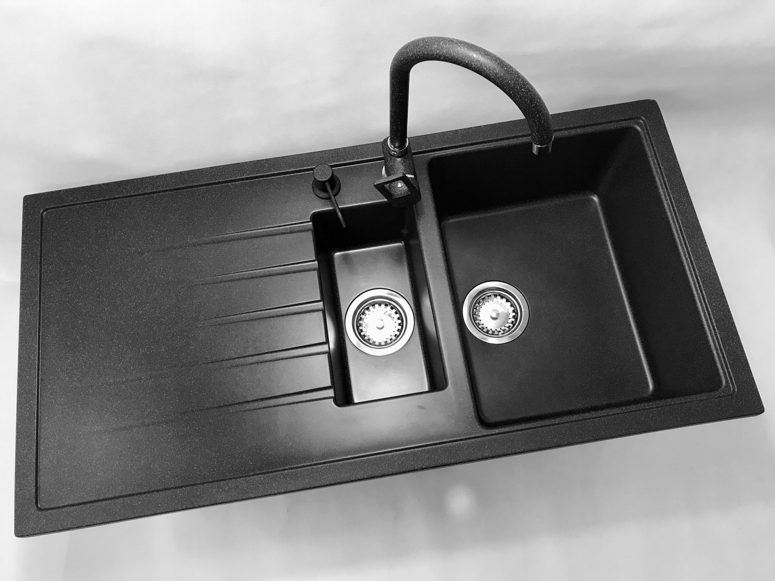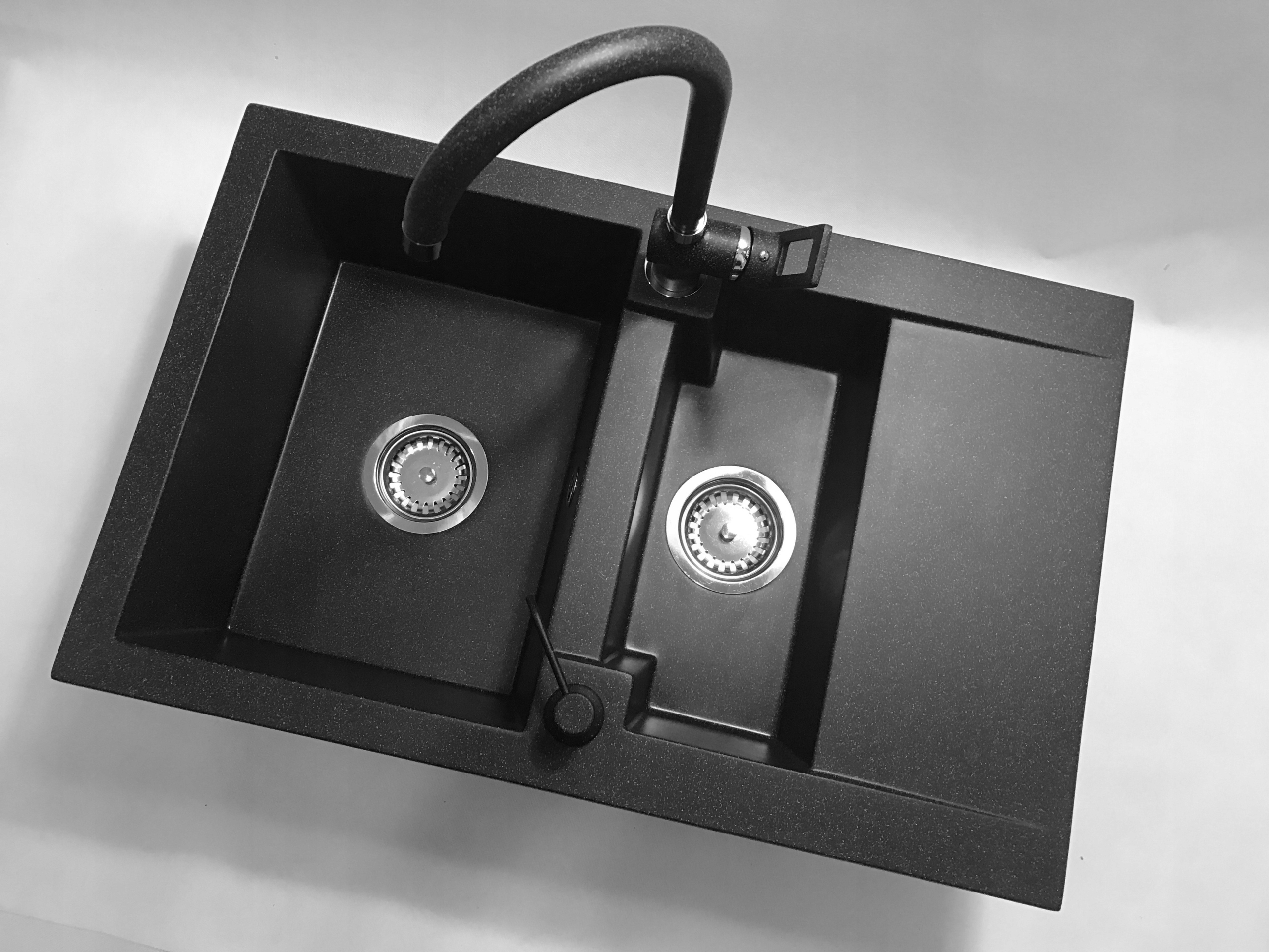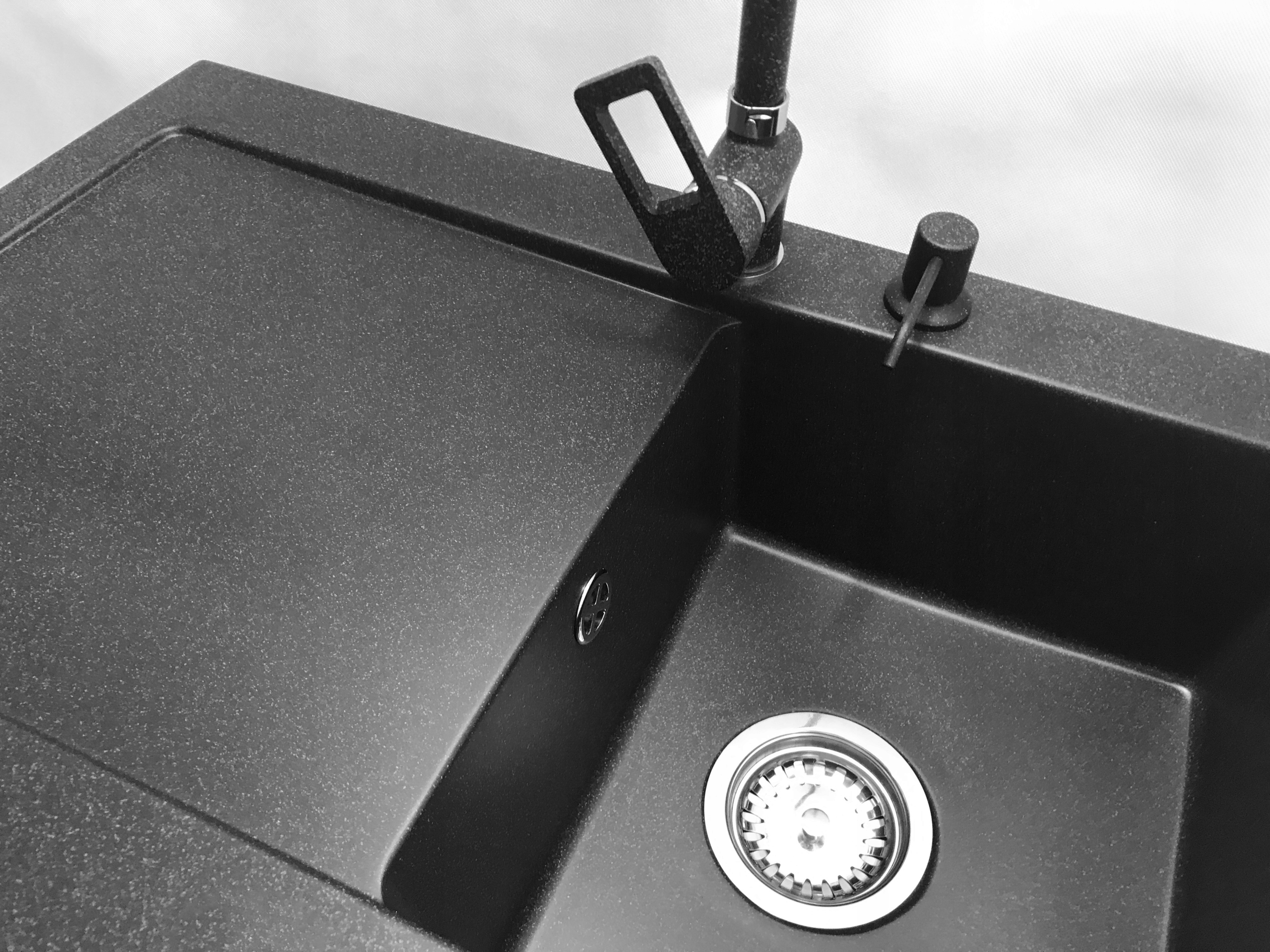 BATERIA ZLEWOZMYWAKOWA STOJĄCA Z WYLEWKĄ U CZARNY