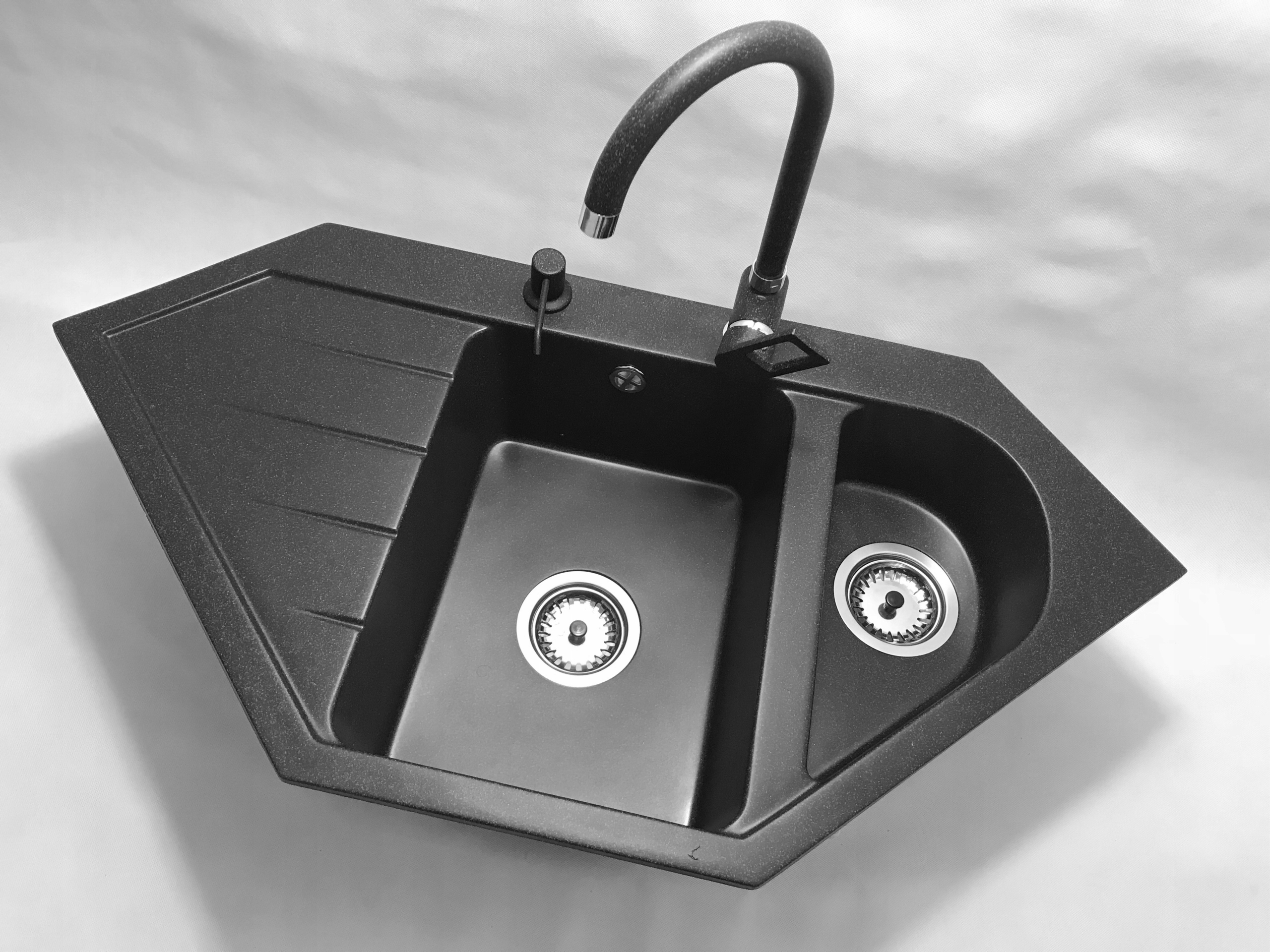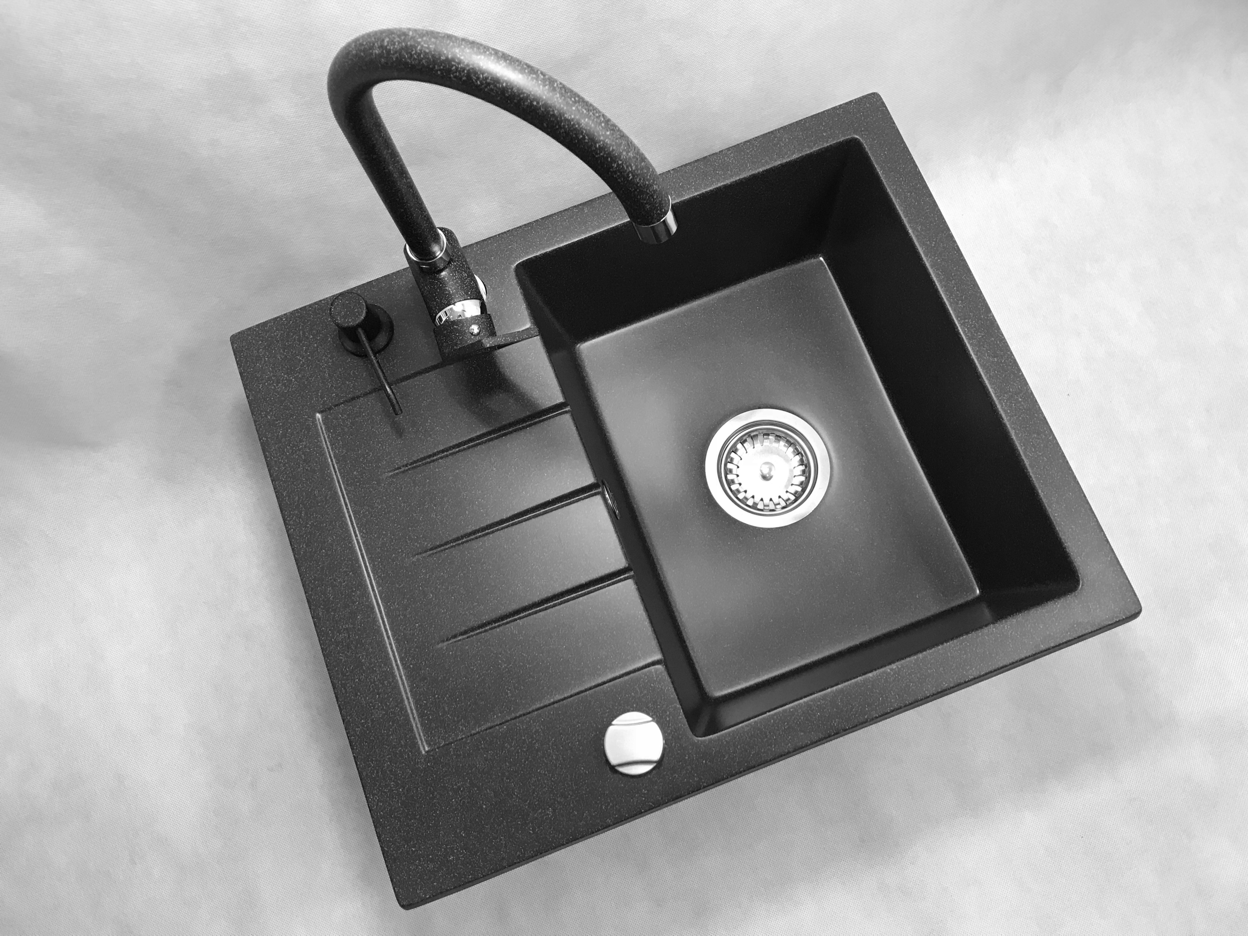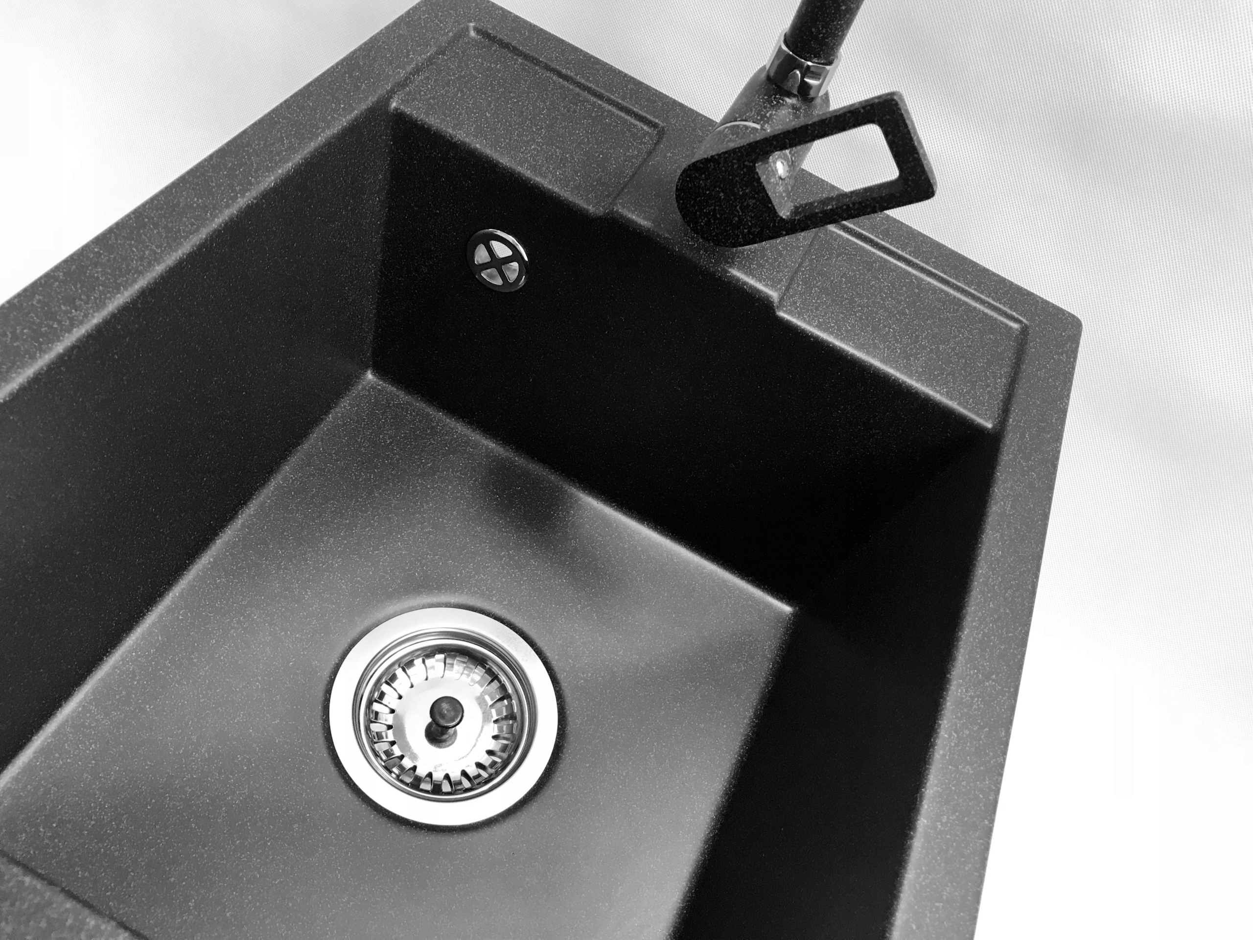 BATERIA ZLEWOZMYWAKOWA STOJĄCA Z WYLEWKĄ U CZARNY