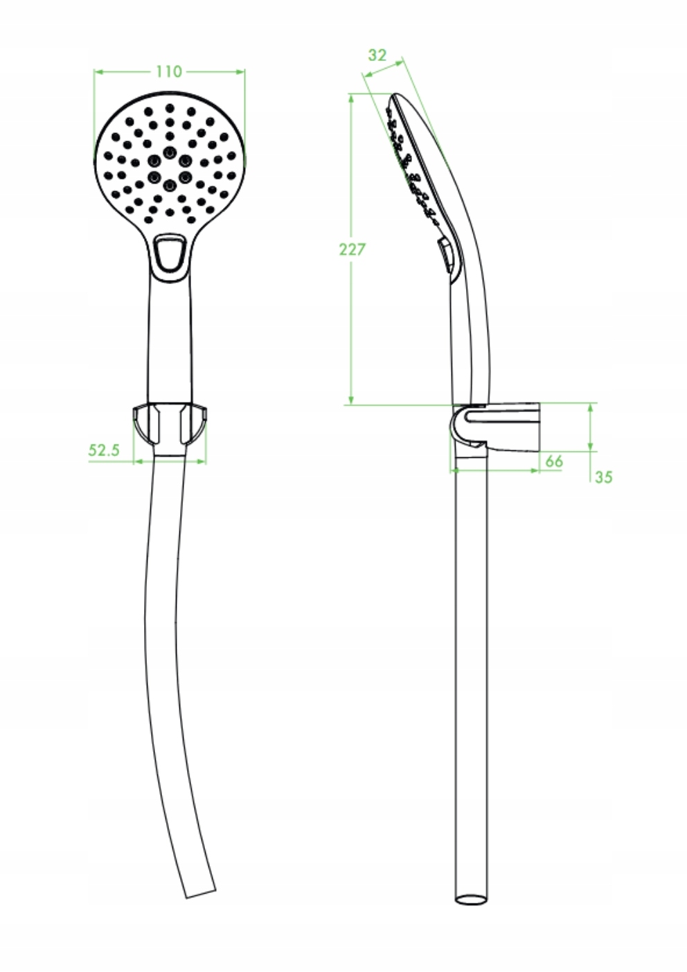 • Średnica dyszy słuchawki: Ø110 mm