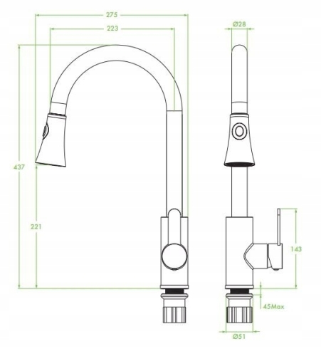 • Wyciągana wylewka: Tak