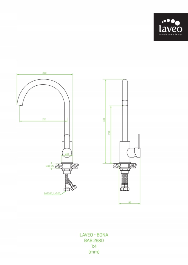 BONA BATERIA ZLEWOZMYWAKOWA STOJĄCA Z WYLEWKĄ U - BAB_268D
