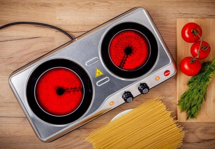 ▶ Ceramiczna kuchenka elektryczna wyposażona została w dwie duże ceramiczne płyty grzejne. Moc 2000 W pozwala na szybkie jednoczesne gotowanie dwóch dań.