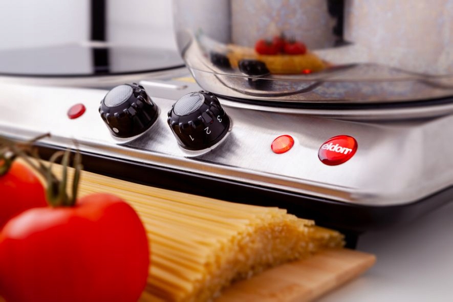 ▶ Konstrukcja kuchenki zapewnia łatwe utrzymanie czystości. Dwa pokrętła zapewniają płynna regulacje temperatury. O pracy urządzenia informują użytkownika diody kontrolne.