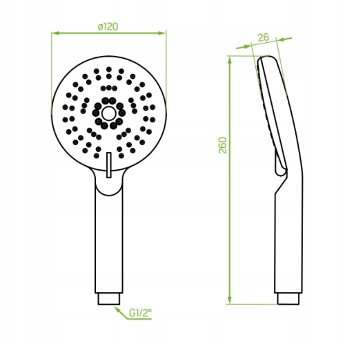 - Średnica dyszy słuchawki: Ø120