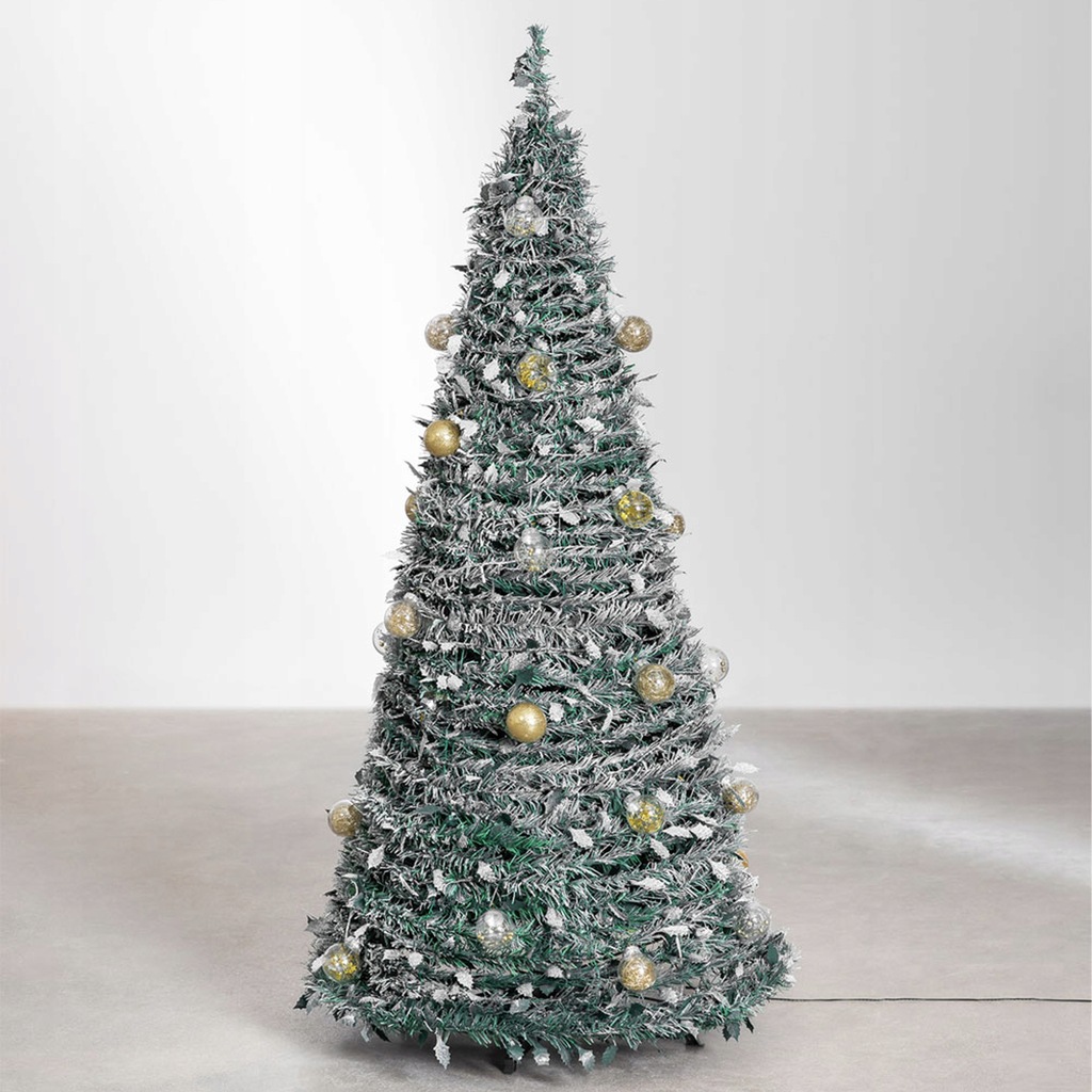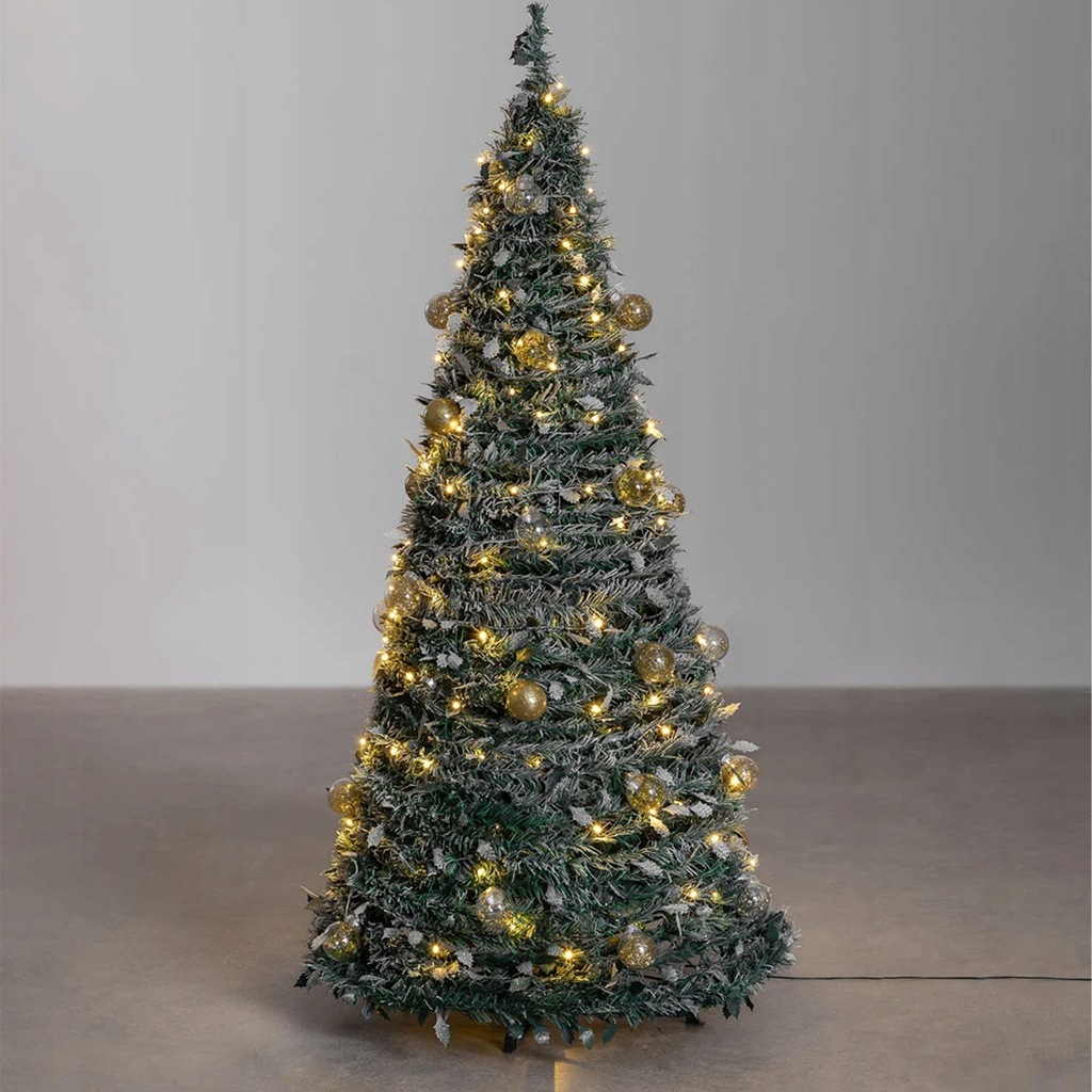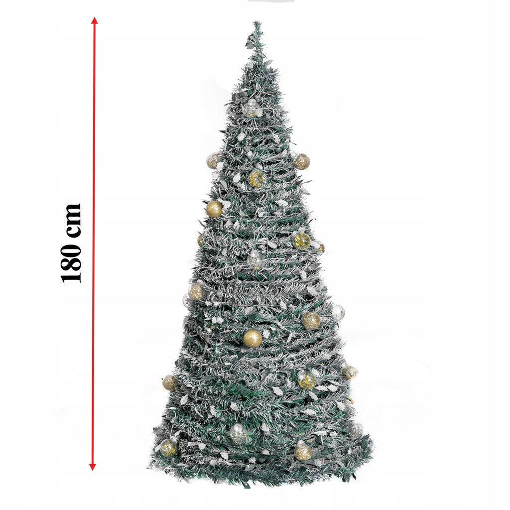CHOINKA ŚWIĄTECZNA OZDOBA DEKORACJA UDEKOROWANA LAMPKI BOMBKI SKŁADANA 180