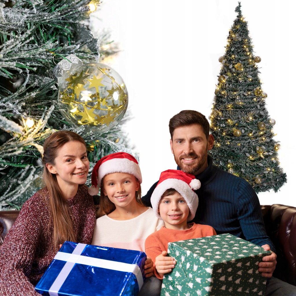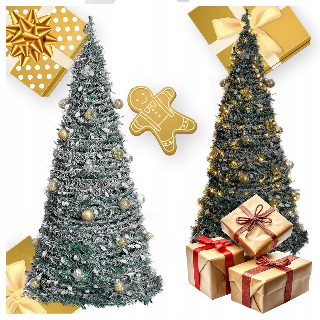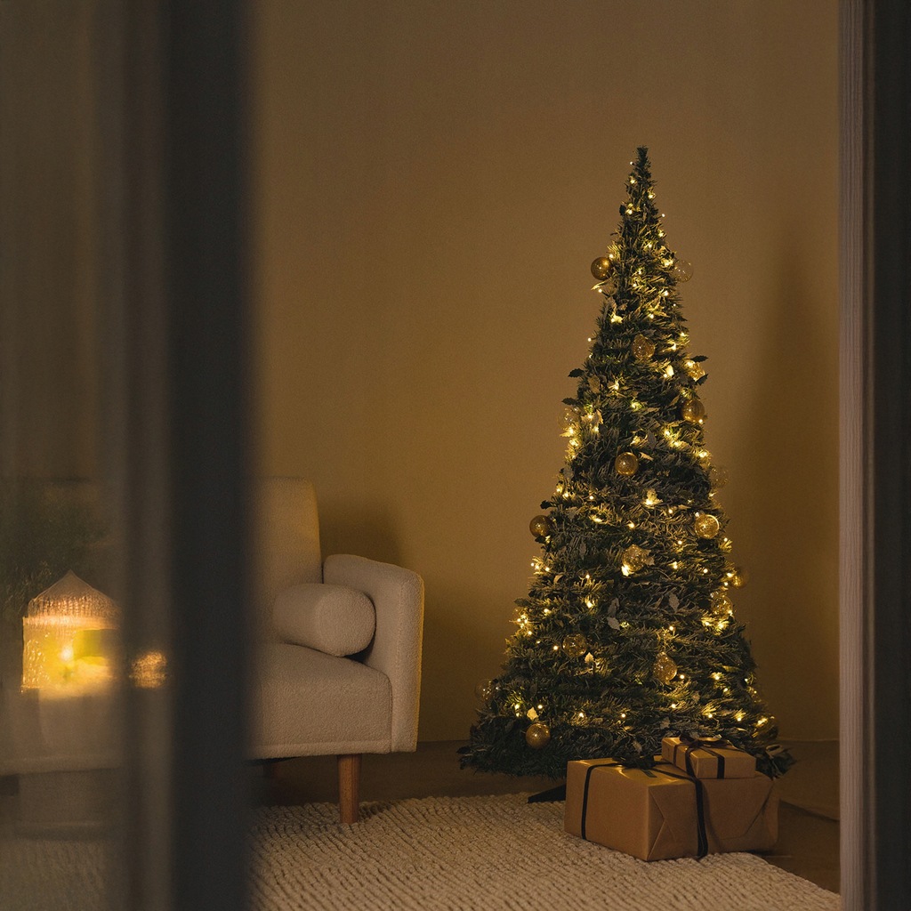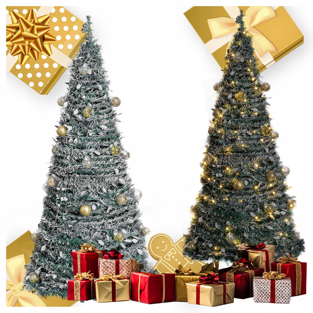 CHOINKA ŚWIĄTECZNA OZDOBA DEKORACJA UDEKOROWANA LAMPKI BOMBKI SKŁADANA 180
