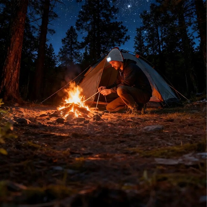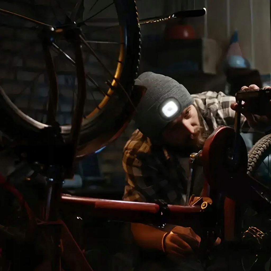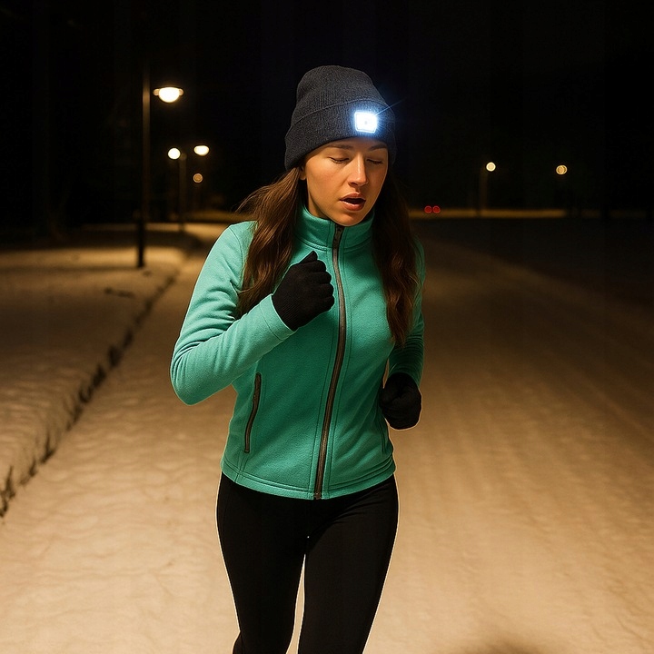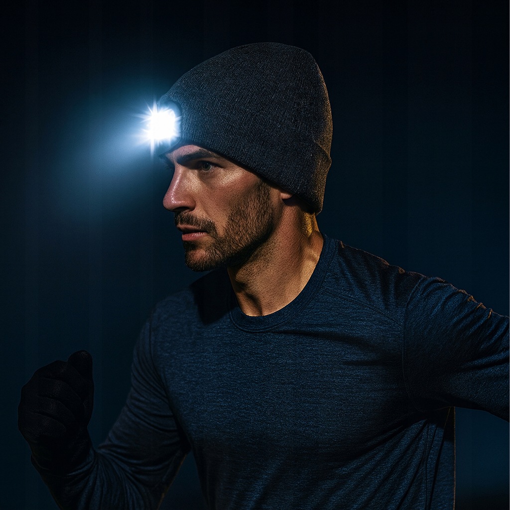 - 2w1 – czapka i czołówka – idealna do sportu, spacerów i pracy w ciemności.