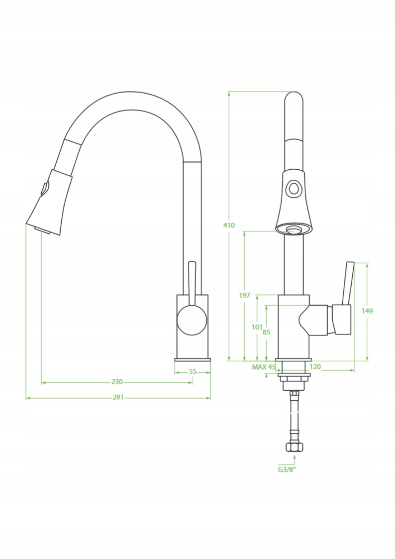 • Bateria zlewozmywakowa stojąca z wyciąganą wylewką