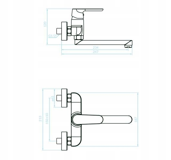 - Typ: ścienna, wylewka ruchoma