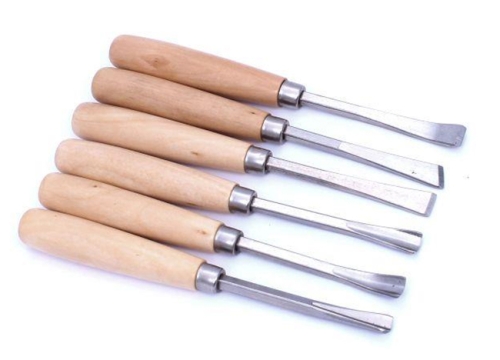 - zestaw 6 sztuk dłut rzeźbiarskich-snycerskich do drewna o różnym profilu ostrza