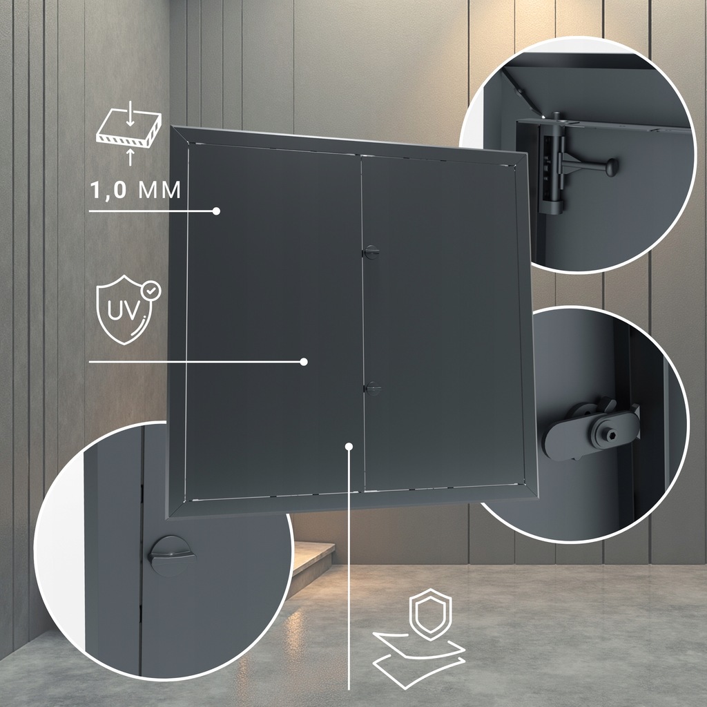 DRZWICZKI REWIZYJNE MASKUJĄCE REWIZJA OSŁONA Z METALU 90X70 CM GRAFITOWE