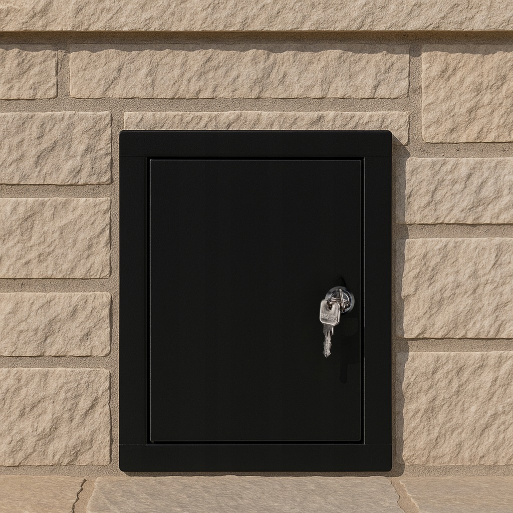 DRZWICZKI REWIZYJNE METALOWE REWIZJA NA ZAMEK KLUCZ 15x25 CM METAL CZARNE