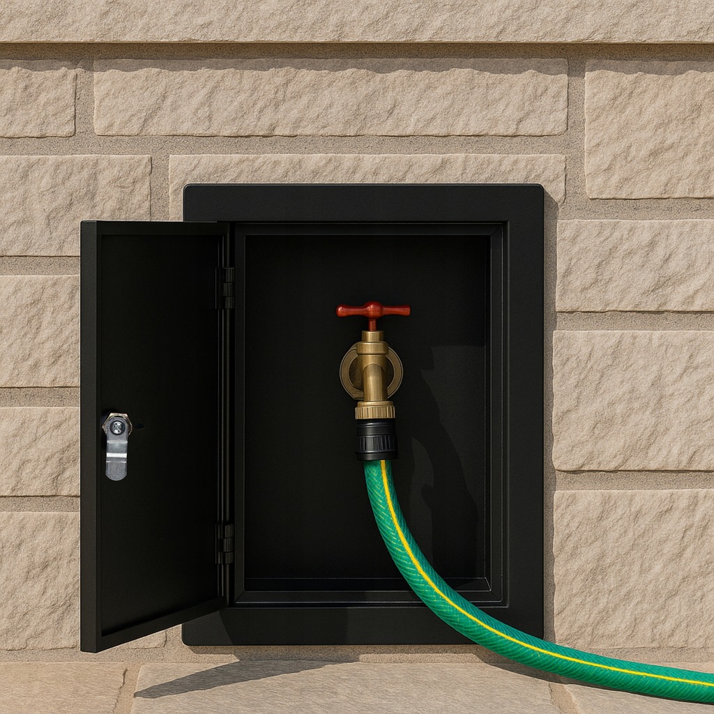 - Drzwiczki metalowe, wykonane ze stali ocynkowanej, pokryte farbą proszkową z certyfikatem Qualicoat do zastosowań zewnętrznych