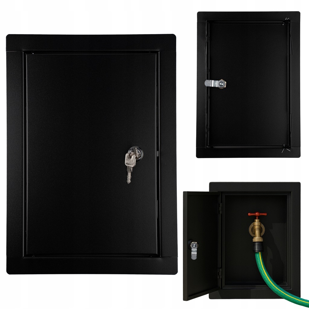 DRZWICZKI REWIZYJNE METALOWE WYCZYSTKA ZAMKNIĘCIE NA ZAMEK 30x40 CM CZARNY