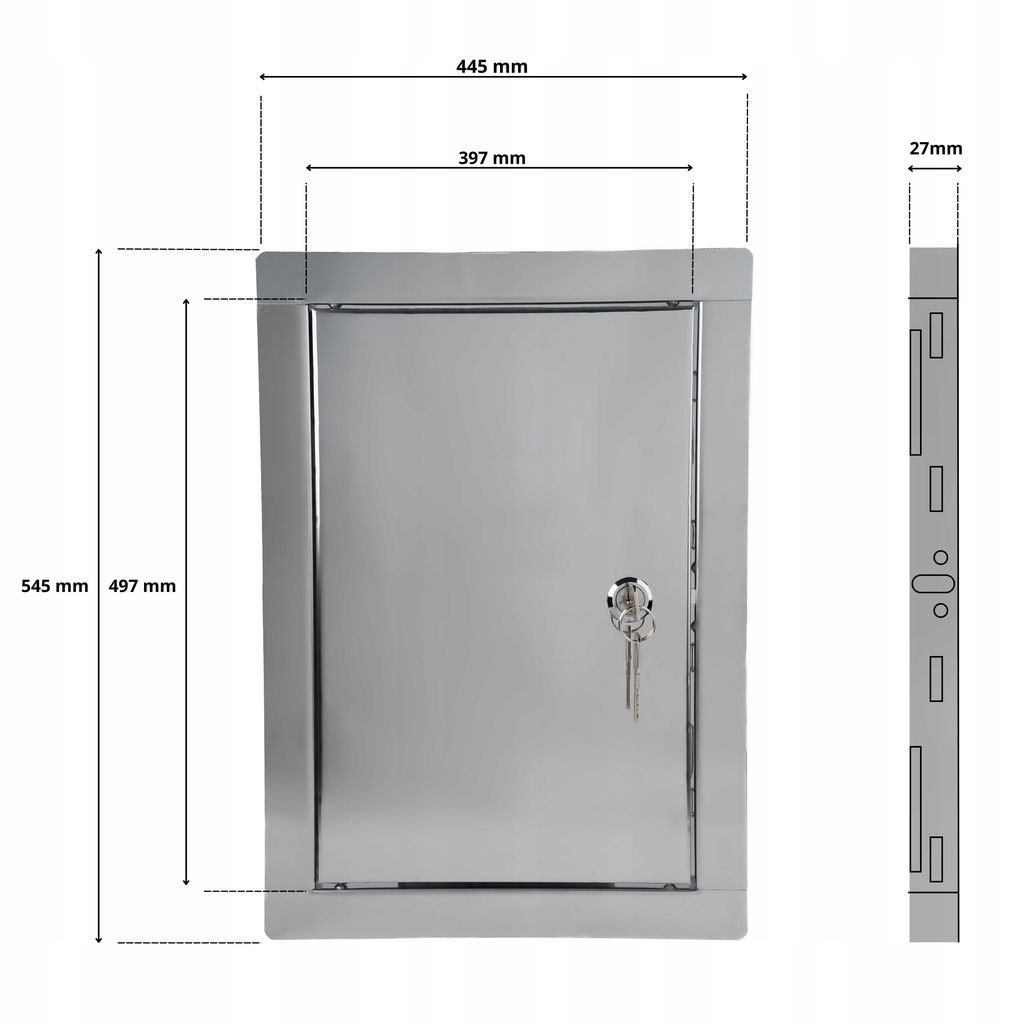 DRZWICZKI REWIZYJNE NIERDZEWNE METALOWE ZAMYKANE NA ZAMEK KLUCZ 40X50 CM