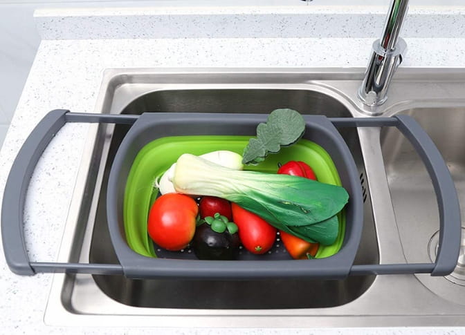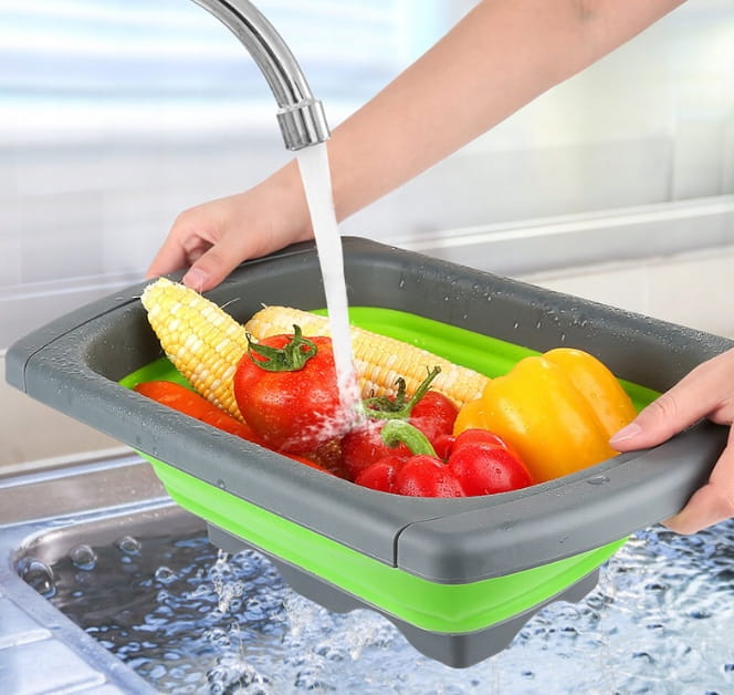 ✅ Niezwykle praktyczny, składany durszlak silikonowy z rozsuwanym uchwytem.