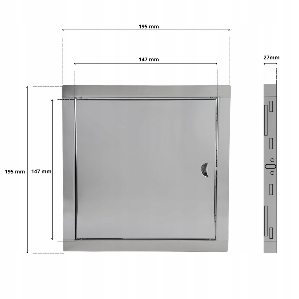 Drzwiczki metalowe przeznaczone do maskowania otworów technicznych w ścianie, zabudowy zaworów, a także doskonale nadają się do sufitów podwieszanych, maskowania wszelakich urządzeń sanitarnych i elektrycznych.