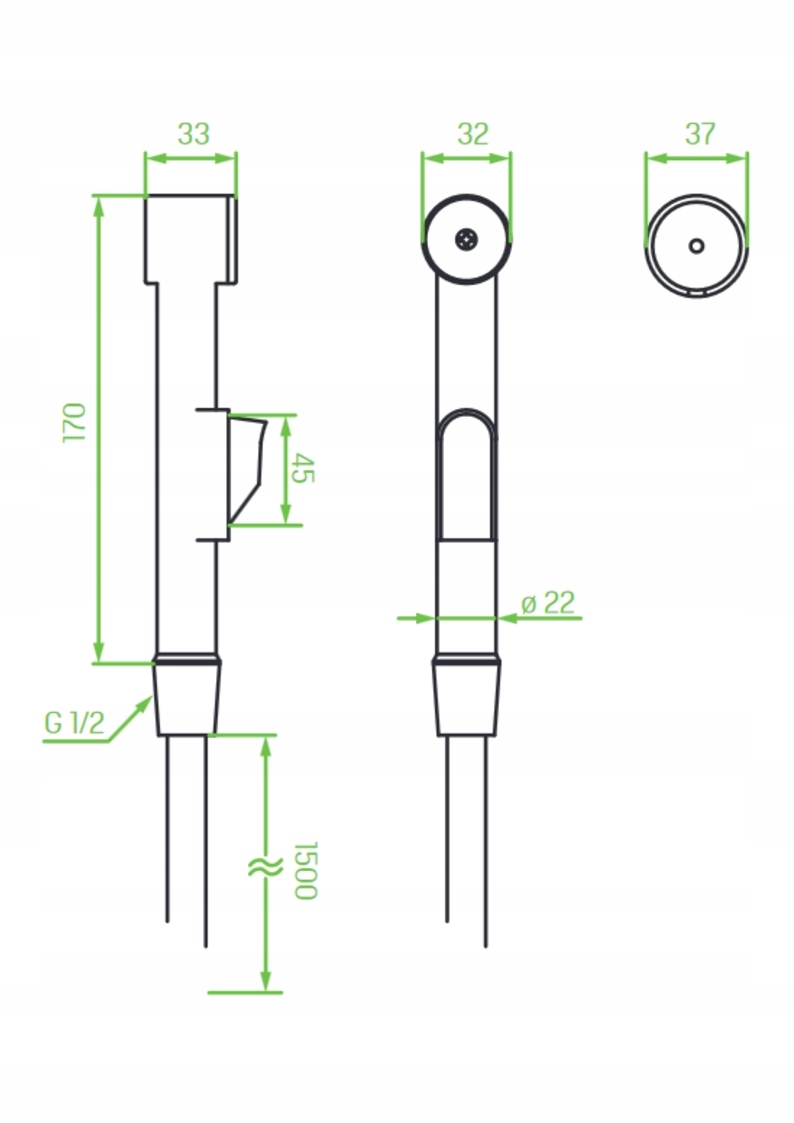 ☑️ Ten przydatny zestaw wyposażony jest 1-funkcyjną, smukłą słuchawkę o deszczowym strumieniu oraz węża natryskowego o długości 150 cm z systemem antyskręt.