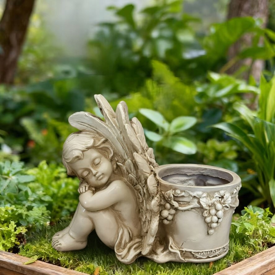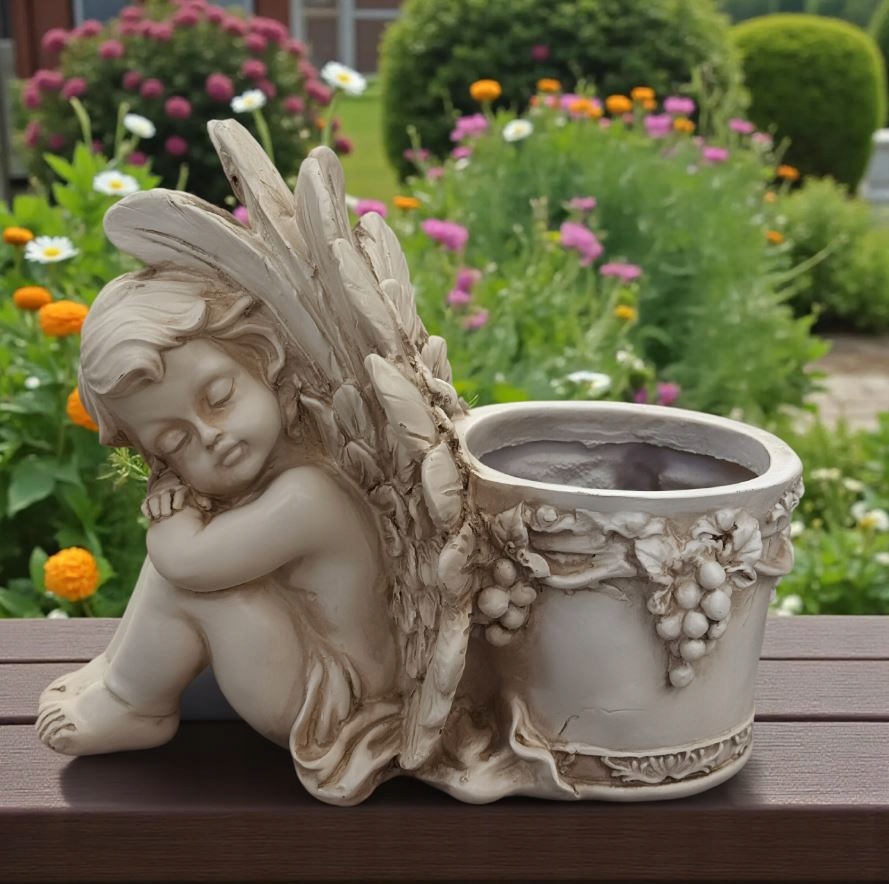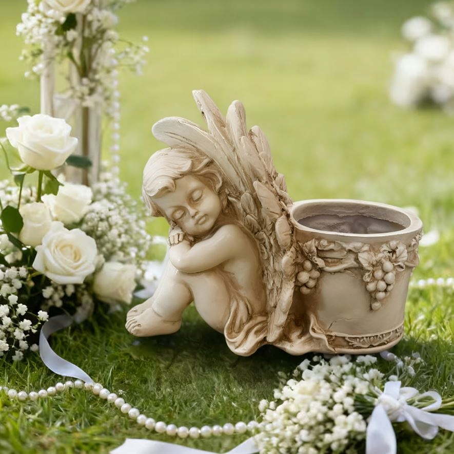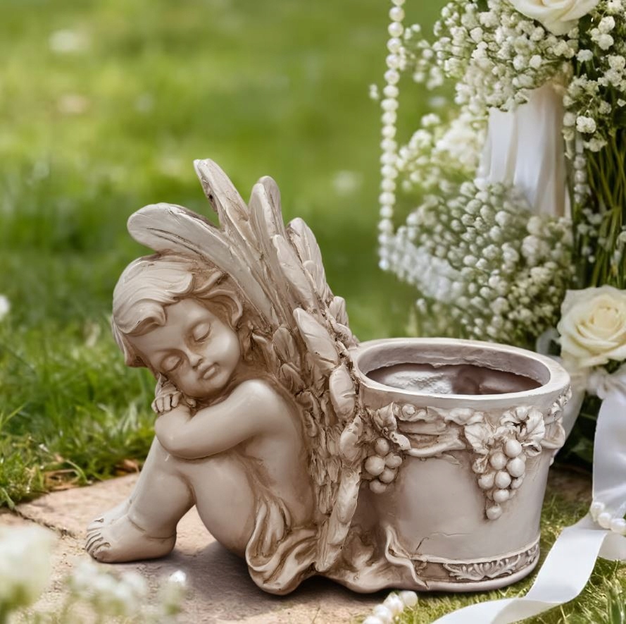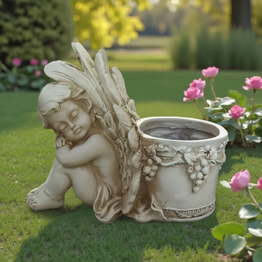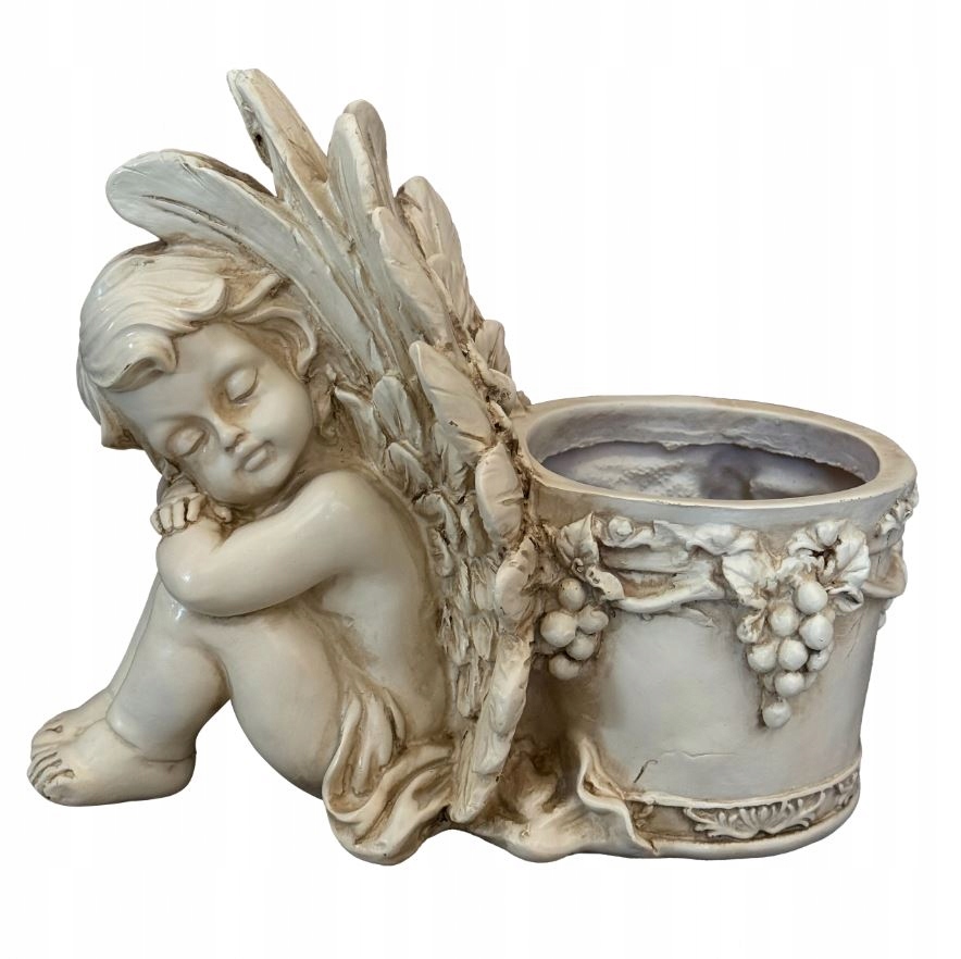 - Wyjątkowy design – urocza rzeźba aniołka łączy funkcję doniczki i dekoracji, dodając uroku każdemu miejscu.