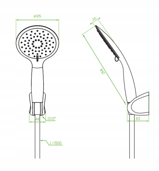 - Długość węża: 1500 mm
