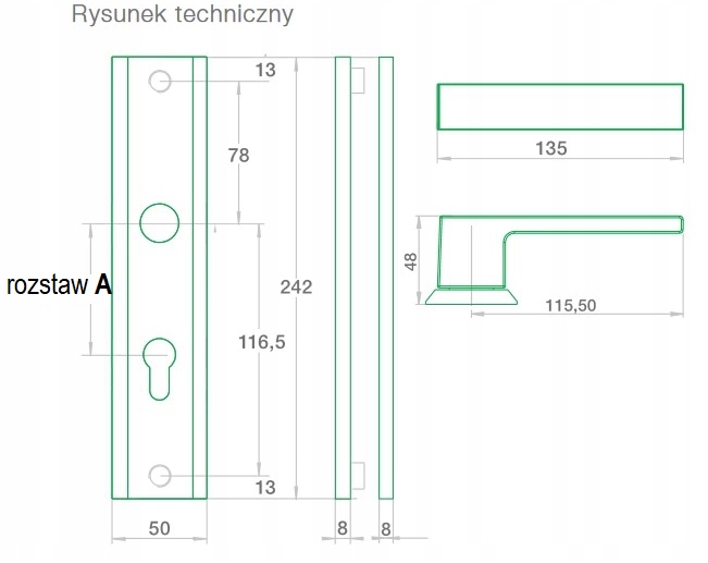 - Głębokość od szyldu do końca rękojeści: 50/45 mm