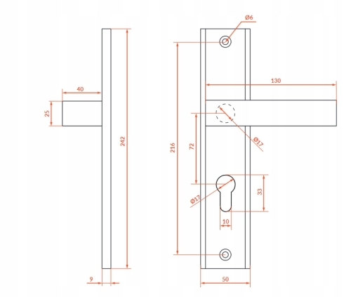 ✔️ Głębokość od szyldu do końca rękojeści: 49mm