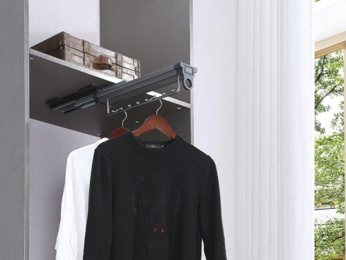 - Funkcjonalny wysuwany wieszak na ubrania z serii ATM Symphony do montażu w szafie lub garderobie.