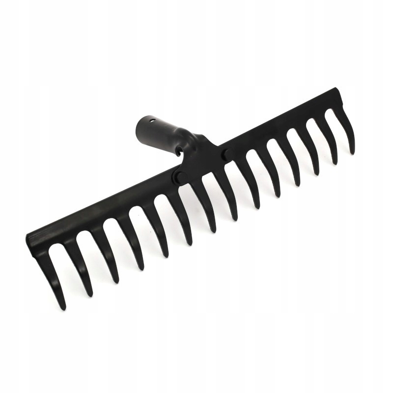 - Głowica do grabi z 18 zębami, wykonana z utwardzanej stali o grubości 3 mm, przeznaczona do pracy w ziemi i wyrównywania terenu.