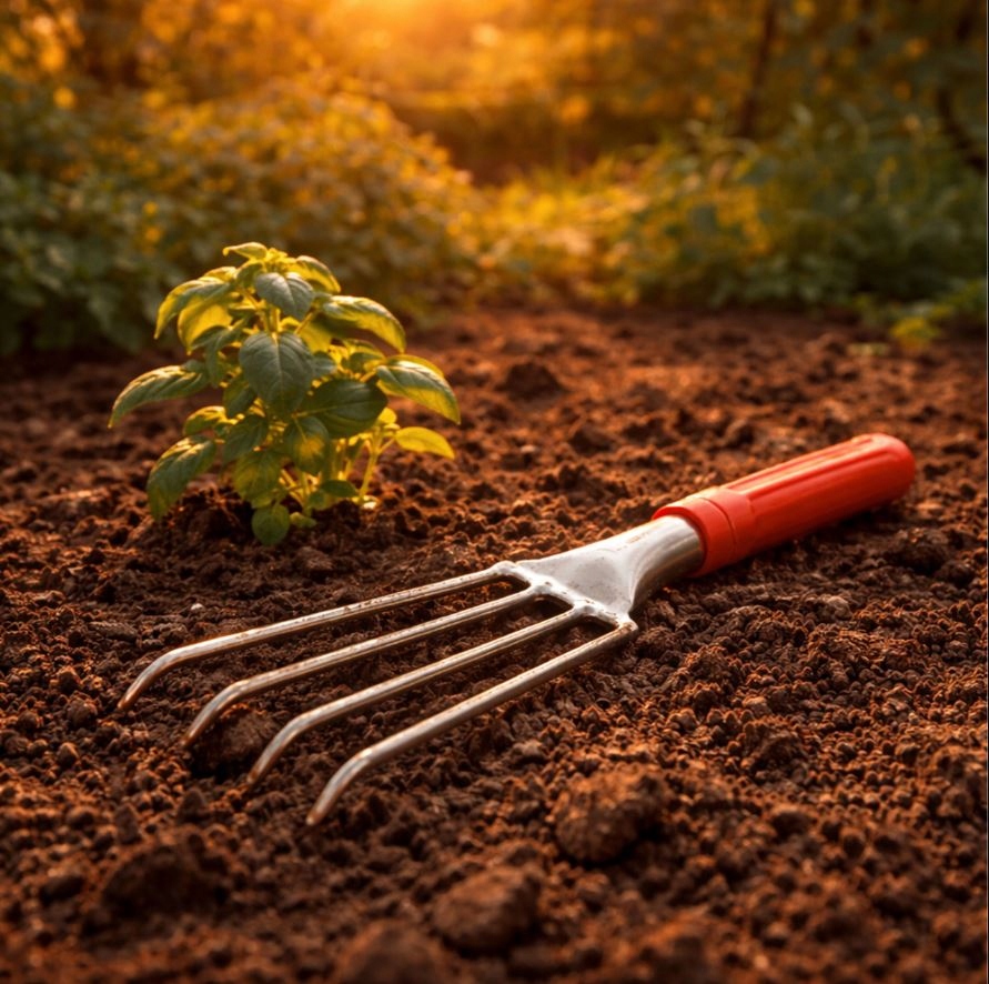 - 4 wytrzymałe zęby – skuteczne spulchnianie i grabienie.