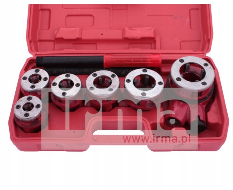 Gwintownica do rur w zestawie wymienne głowice Gwintownica do rur 1/4”,3/8”,1/2”,3/4”,1”,1-1/4” + rączka i grzechotka.