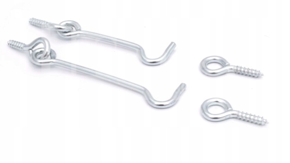 - Haczyk z drutu do domykania okien, drzwi, szatni. W komplecie oczko. Gwint metryczny do wkręcania do drewna. Wykończenie w kolorze srebrnym.