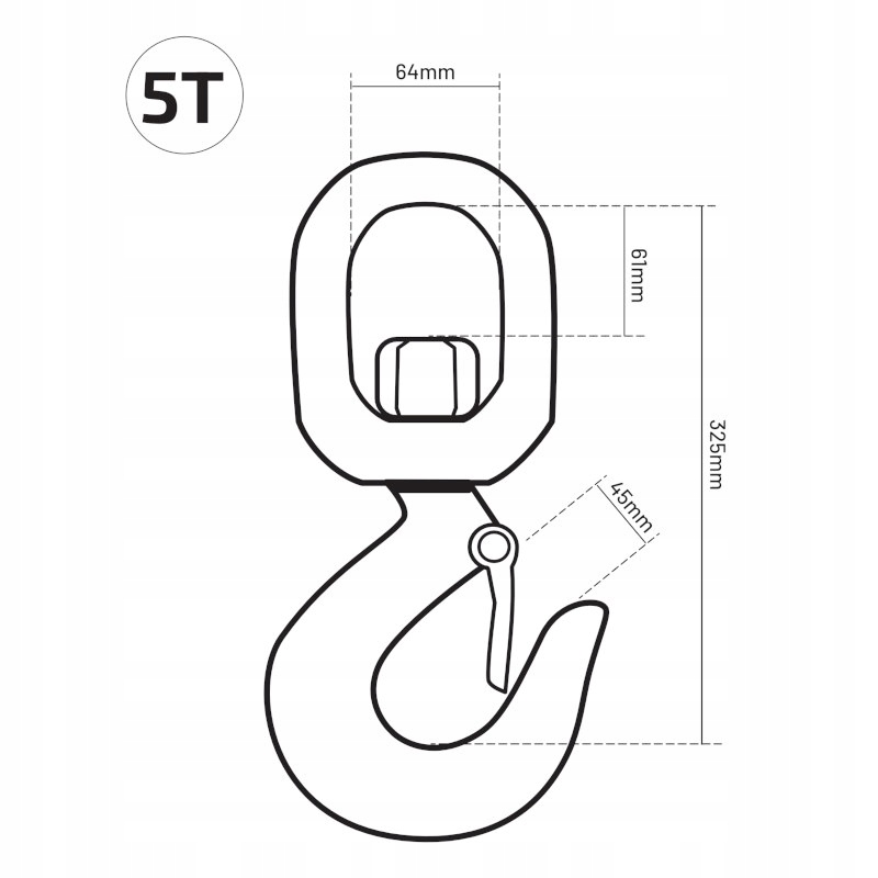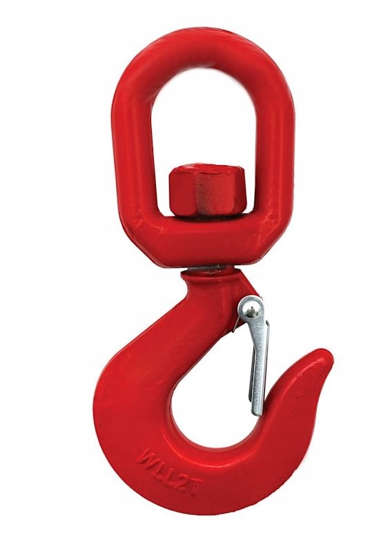 - Zabezpieczenie zapobiega przypadkowemu wysunięciu zawiesia z ładunkiem, a element obrotowy ułatwia właściwe ustawienie haka względem ładunku.