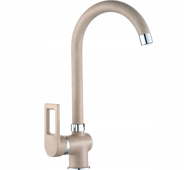 Bateria KASJA posiada ruchomą wylewkę w kształcie litery U co sprawia, że jest polecana zwłaszcza do zlewozmywaków o średniej (16-20 cm) i dużej (powyżej 20 cm) głębokości. Klienci mogą wybrać jeden z trzech dostępnych rodzajów jej wykończeń: gładki chrom bądź nakrapiane czarny lub beż, których struktura imituje granit.